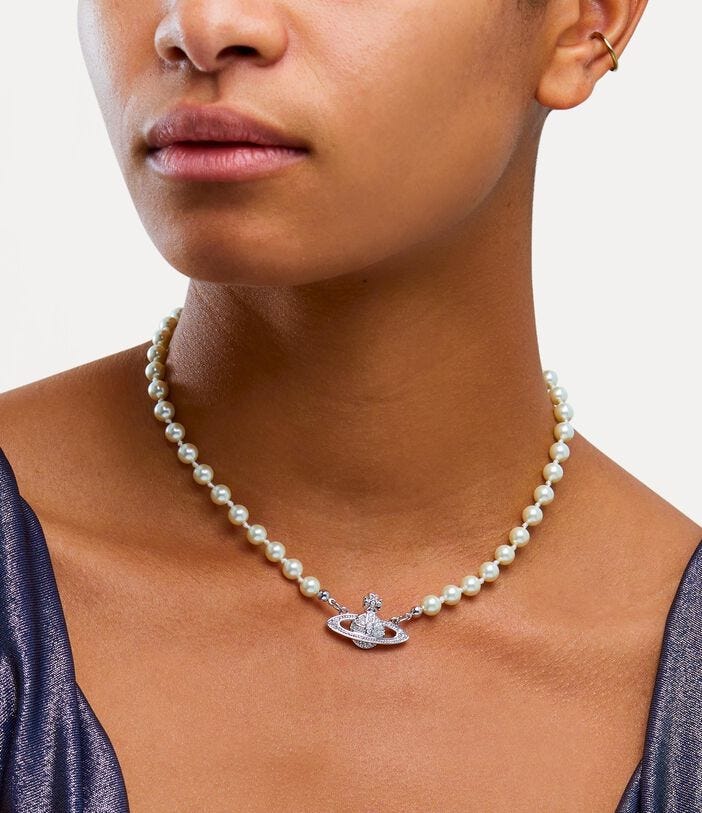 Another example of this is the Vivienne Westwood pearl choker called the ‘Mini Bas Relief Choker’ which began to gain traction as celebrities were seen wearing it. Fast-fashion brands then would create imitations of the product that would be sold for a smaller percentage of the price of the original, making it more accessible for the local fashionable girl. As more people wear it, the less unique the piece becomes, the more “basic” the look becomes.